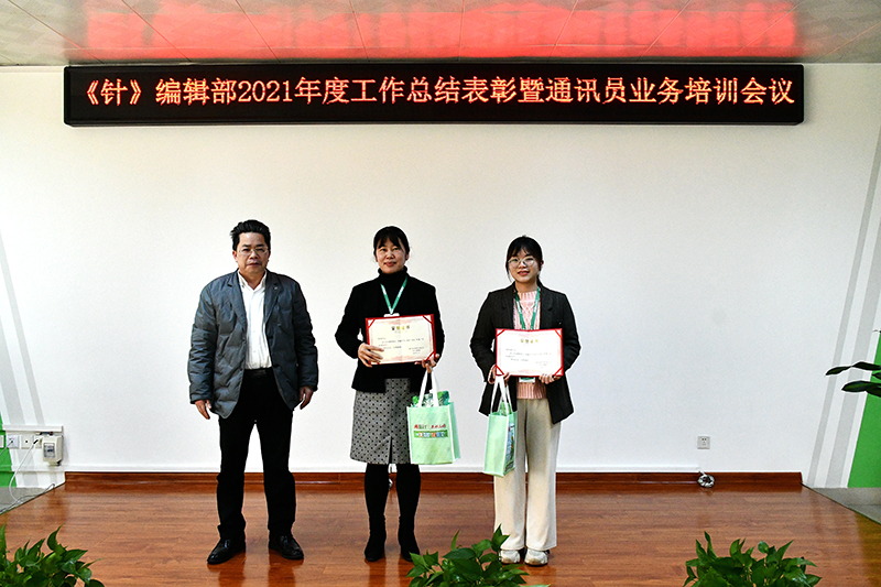 会上,党工部部长、《针》执行总编俞鹃作了2021年编辑部工作总结,通报了2021年各单位及通讯员稿件完成情况,同时部署了2022年《针》稿件采集方向和要求。按照通讯员考核办法,经编辑部评选并上报公司同意,王爱赟、韦志慧、王晖等3人获评2021年优秀通讯员,杨彩莲、叶年荷、林美、魏云等4人获评2021年达标通讯员,市场部、亿康公司等2个单位获评最佳支持集体奖,方堃获评最佳支持个人奖。林钻煌、覃永强分别为获奖的个人和集体颁发了奖金和证书。