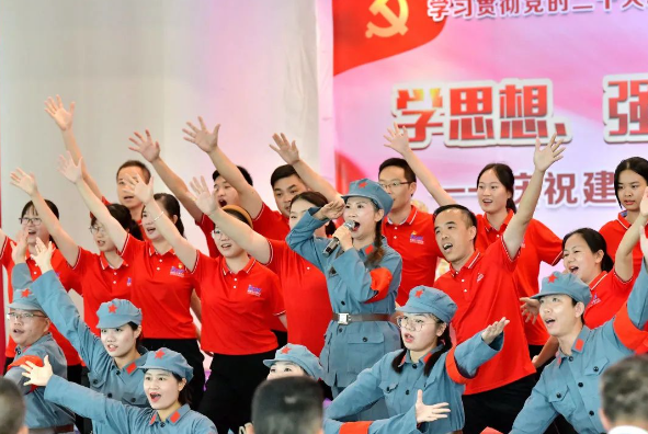 伴随着全场合唱《没有共产党就没有新中国》,本次情景微党课比赛圆满落下帷幕。
